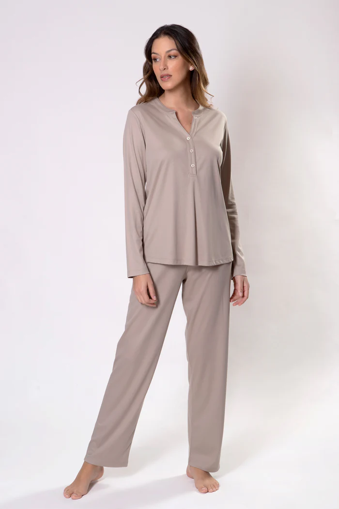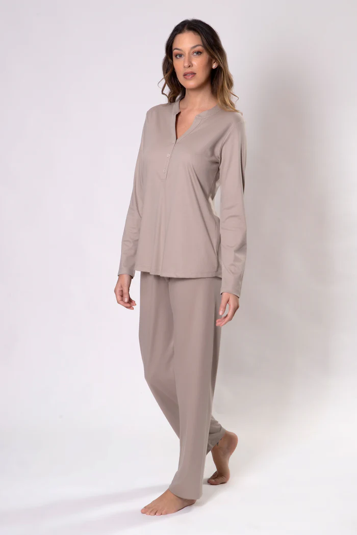 Designed with the discerning woman in mind, this set is meticulously crafted from 100% premium pima cotton, ensuring a soft and sumptuous feel against the skin. The Abbie Set seamlessly marries timeless elegance with modern design, making it a must-have addition to your nighttime wardrobe. Whether you’re winding down for the evening or indulging in a lazy morning, the Abbie Set promises to envelop you in unmatched comfort and sophistication.