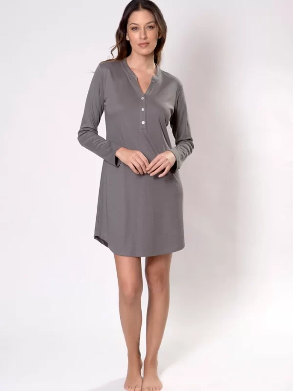 USD $115.00 Discover the ultimate in comfort with our long-sleeved nightgown. Made from 100% Pima cotton and crafted in our Peruvian factory, this nightgown features a soft linen-blend fabric that feels luxurious against the skin. Designed with a flattering body-skimming silhouette, it ensures a restful night's sleep.